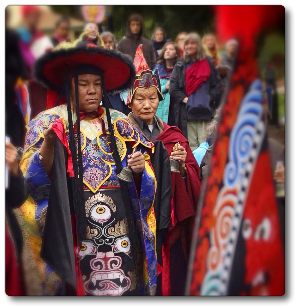 Gutor itself will start at the earlier time of 8:30 AM with a 2 PM afternoon session on February 7. In the morning we will go through the sadhana up to tsok. The afternoon will start with the averting ritual, where the sacred black hat dance is performed, and the ritual torma cast and consumed in a wisdom bonfire.