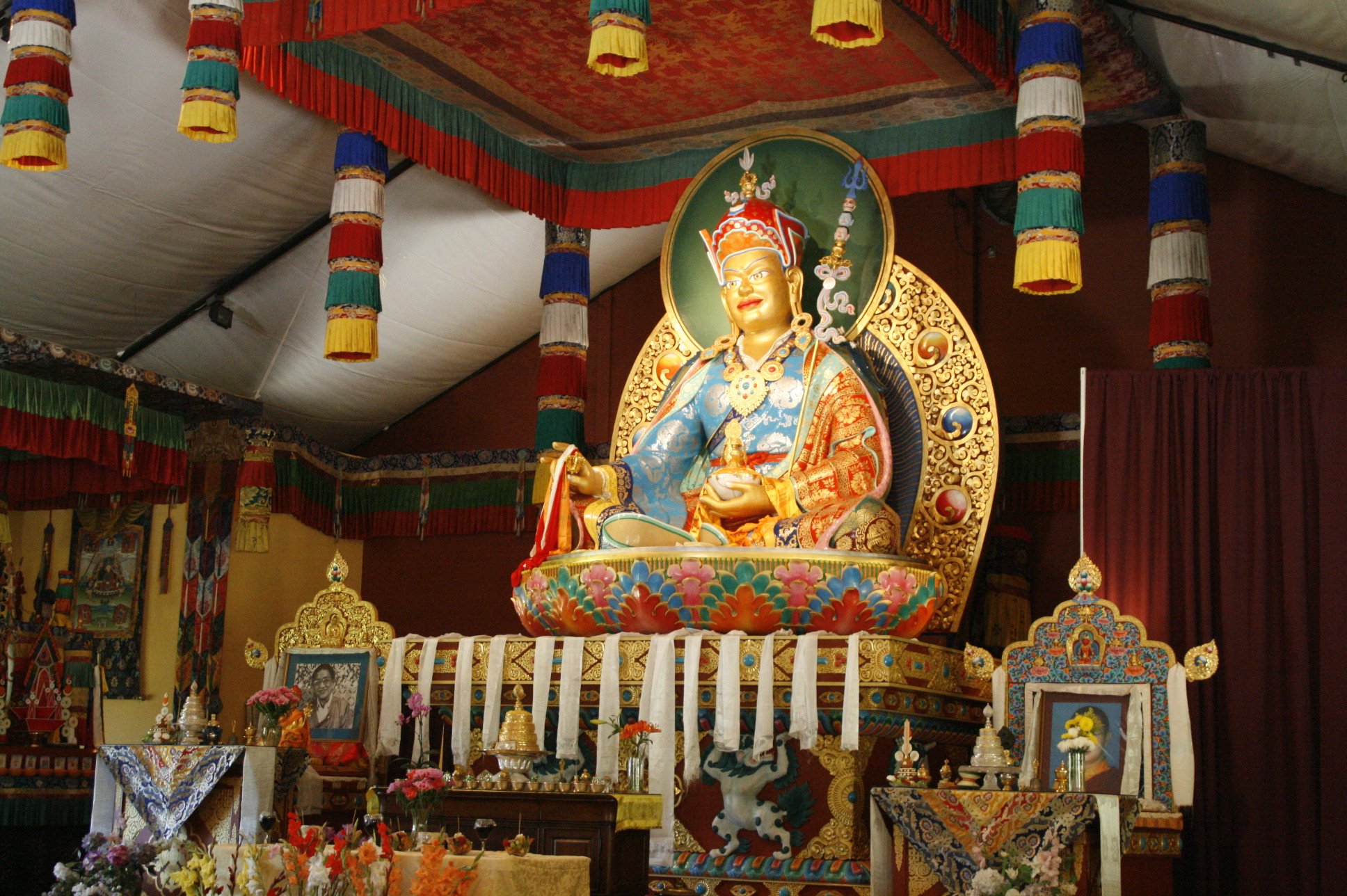 Drupchen (Great Accomplishment) is an extensive practice retreat. In the Collection of Seven Treasures: The Mind Accomplishment of the Lama we perform this highly elaborate Guru Rinpoche Guru Yoga practice as a group, drawing on the full array of the skillful means of Vajrayana practice, such as the creation of the mandala, group sadhana practice, tsok offerings, 24-hour mantra recitation, ritual music, mudra, fire pujas, and sacred dance. Due to Guru Rinpoche's previous compassionate aspirations for these degenerate times, the practice carries the most penetrating compassion and wisdom blessings. Click here for Lama Tharchin Rinpoche's talk about Drupchen.