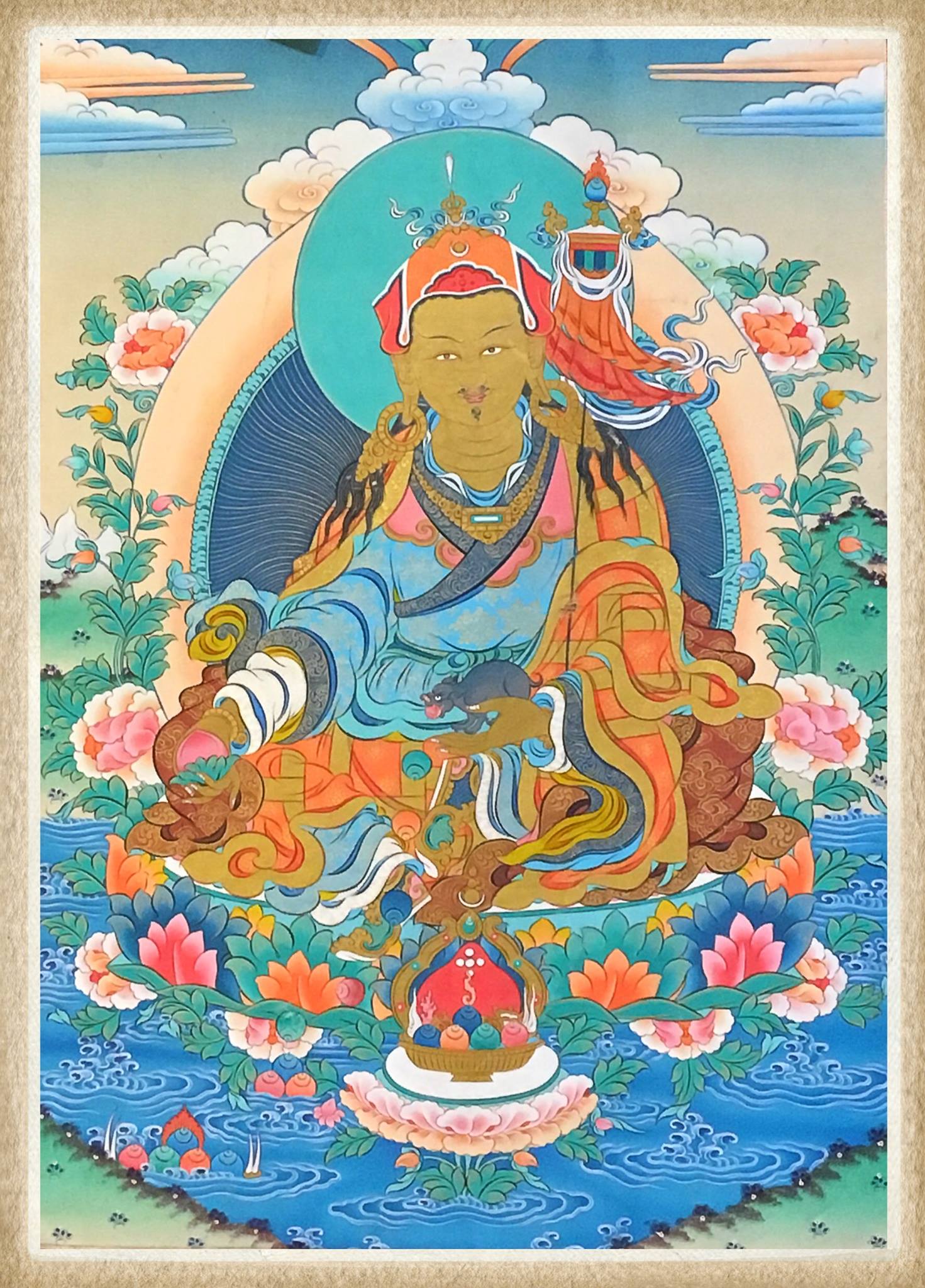 Khandro Norlha or Guru Dzambhala is Guru Rinpoche manifesting as the deity of wealth for the benefit of beings suffering from poverty and decline. He is the embodiment of the perfect generosity of all buddhas and bodhisattvas in the past, present and future. This empowerment and practice are said to increase merit, bring success in business, cure disease, end famine and drought, and increase wealth and prosperity.
