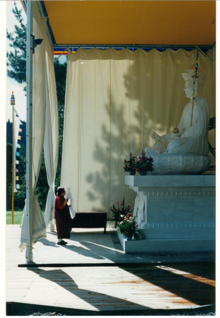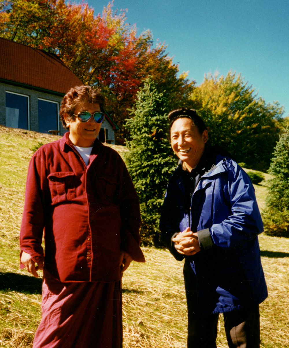On a physical level it is not realistic for us to expect that Kyabje Dungse Rinpoche can stay with us forever. His passing into parinirvana is a teaching on impermanence. It can help us to remove our lazy habit, always thinking we will have time to practice later, later. By meditating on impermanence we can accomplish our practice. We have to remember that we did receive Kyabje Dungse Rinpoche’s incredible teachings, which are unlike those of any other teacher. Rinpoche gave us the essence of his Kuntuzangpo wisdom mind directly in the palm of our hands. We did receive this precious gift from him. Our job then, what we are responsible for, is to keep Rinpoche’s blessings warm in our heart without forgetting them. We can heat them up and keep his wisdom mind alive and inseparable with our own mind. That is what is truly reliable. From that ultimate point of view, we don’t have any separation with Rinpoche. That connection will last forever within our hearts. Please keep that.